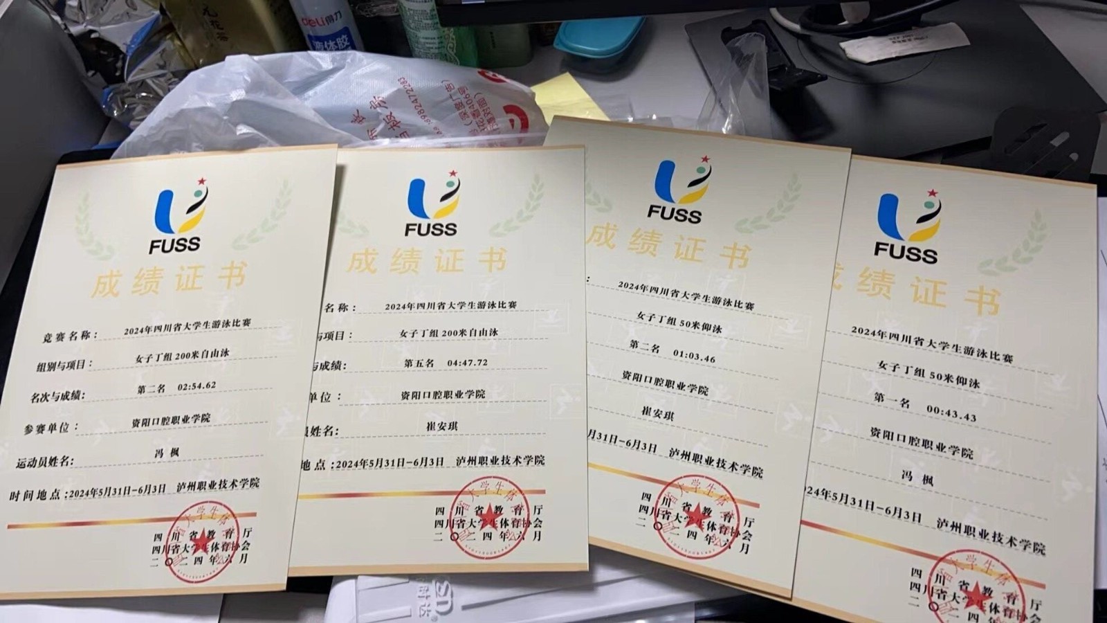 5月31日到6月3日,由四川省教育厅主办、四川省大学生协会执行、泸州职业技术学院承办的2024年四川省大学生游泳比赛在泸州职业技术学院游泳馆圆满落幕。资阳口腔职业学院体育教研室主任王艺琬担任校游泳队教练带队参加比赛,与全省30多所高校的400余名运动员在赛场上奋“泳”拼搏,并取得优异成绩。