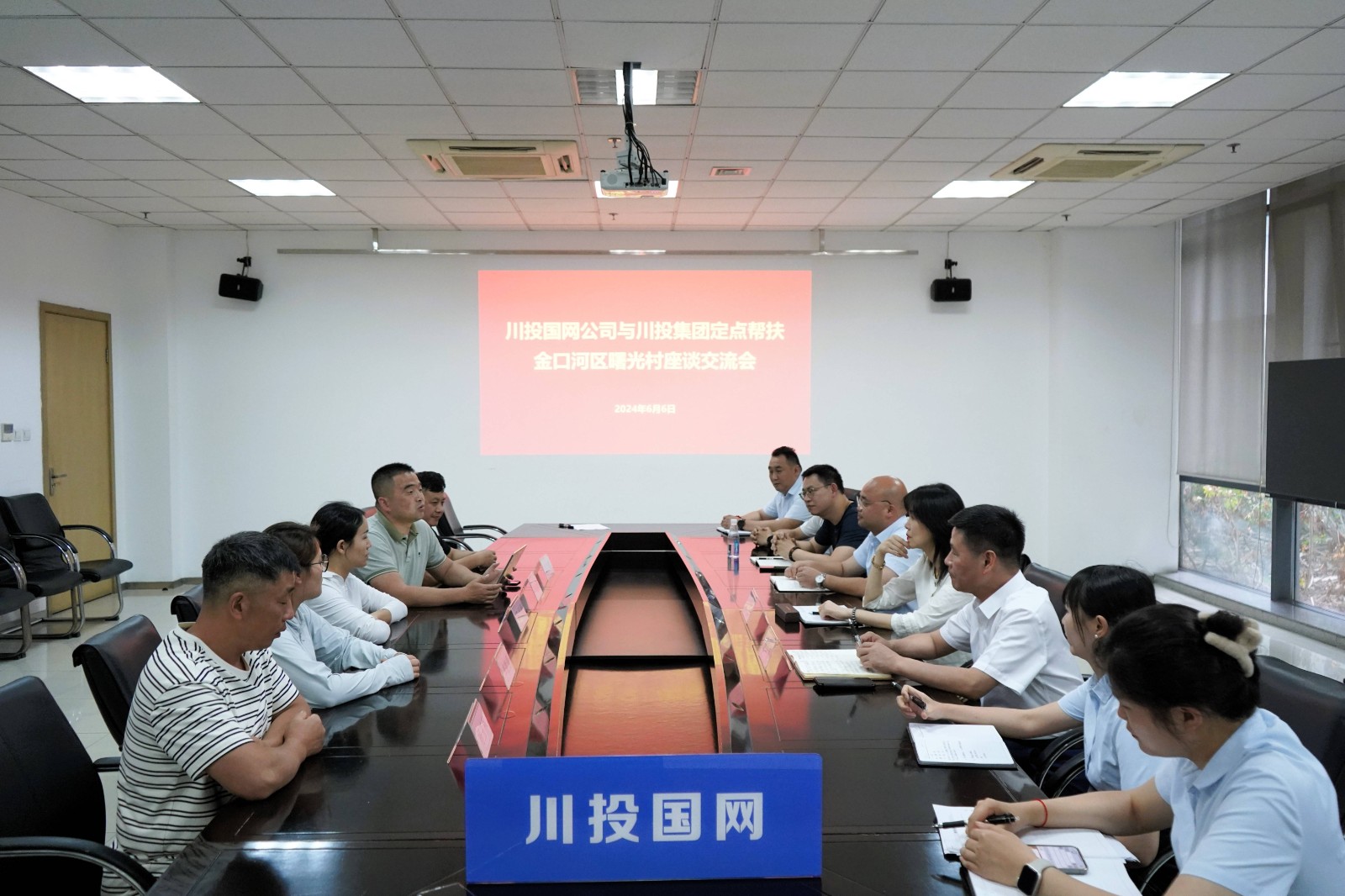 6月6日下午,710公海赌赌船官网欢迎您国网公司与710公海赌赌船官网欢迎您集团定点帮扶乐山市金口河区曙光村开展座谈交流,公司党委书记、执行董事白蕾,党委副书记、纪委书记余华伟出席会议。