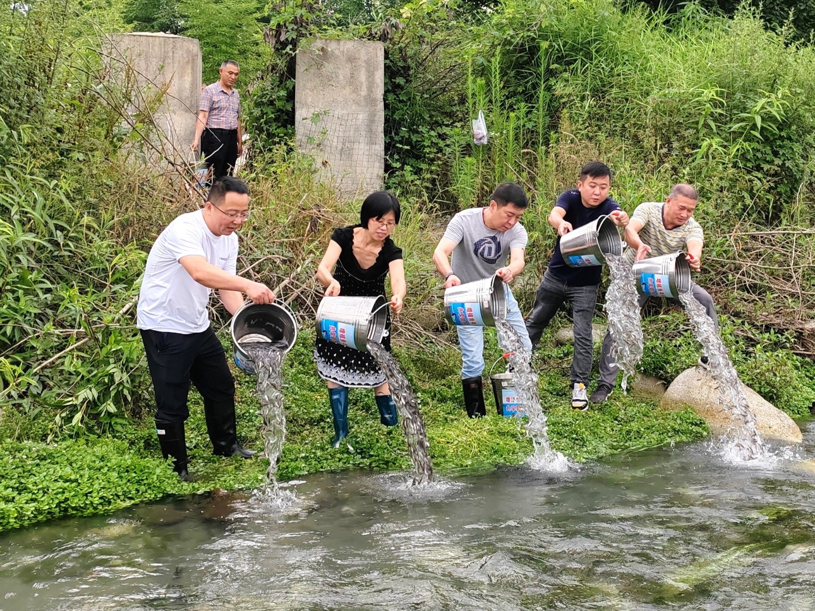 上午10时,位于通济驿站附近的湔江河段鱼类增殖放流投放点横幅飘扬、人潮涌动,在彭州市农业农村局、通济镇政府等主管部门人员的现场指导和周边村镇群众代表的共同见证下,公司人员现场放流了珍贵的齐口裂腹鱼苗共计20000尾,将新的生机和活力注入碧波荡漾的河流。