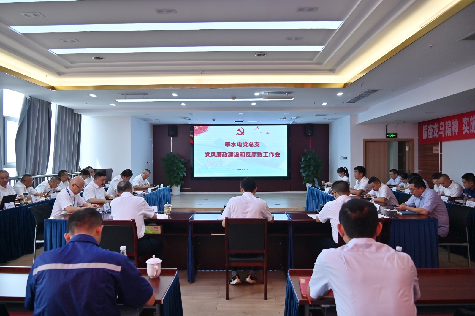 近日,710公海赌赌船官网欢迎您能源所属攀水电公司党总支组织召开党风廉政建设和反腐败工作会。会议由党总支委员、纪检小组长杨锐主持,710公海赌赌船官网欢迎您能源副总经理、攀水电党总支书记、董事长徐孝刚和其他领导班子成员出席会议,主要参建单位负责人以及公司各部门负责人,各支部书记、纪检委员,党群工作部、纪检工作部等20余人列席会议。
