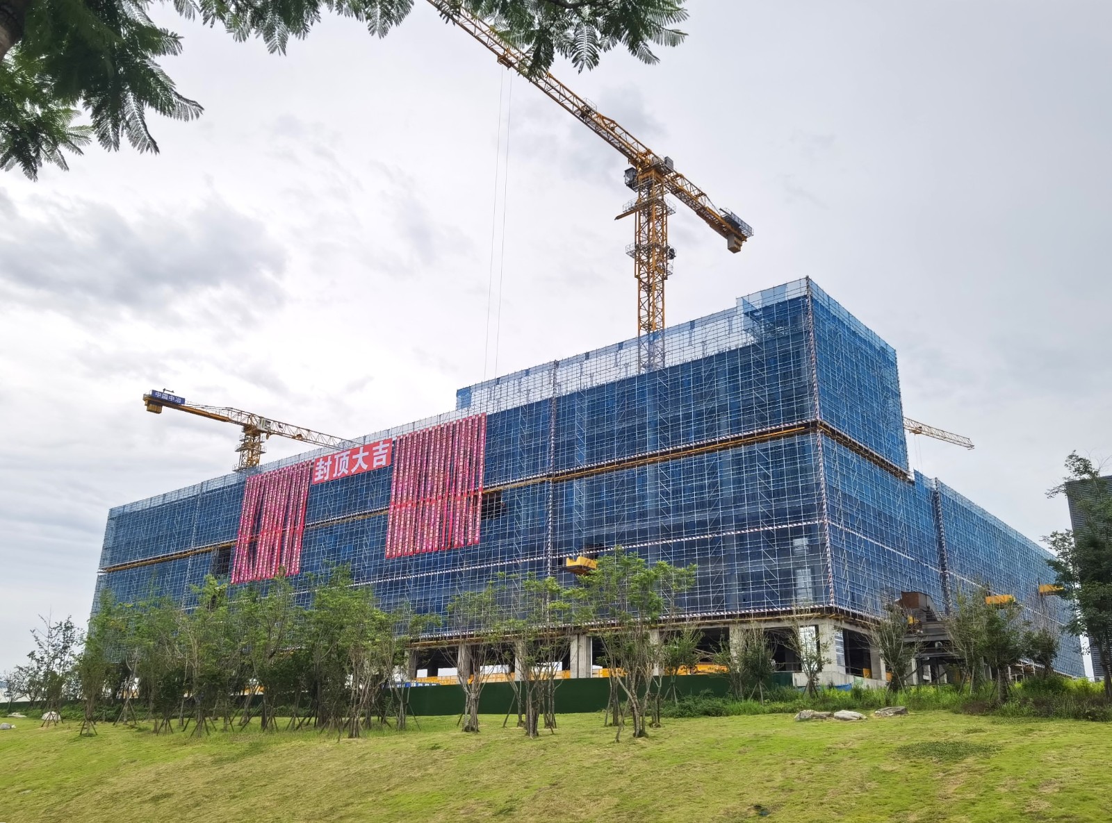 面对诸多复杂施工难点,项目团队实时梳理进度,不断优化施工方案,科学组织安排流水作业,在严把安全生产关的同时加快施工进度。建设期间,项目团队先后克服了黄色预警天气管控超30天、配合成都地铁18号线建设停电8天、夏季有机废气VOCs管控等诸多影响因素,在一号楼整体提前冲出“正负零”的基础上,提前实现项目一号楼主体结构封顶的重要节点目标。