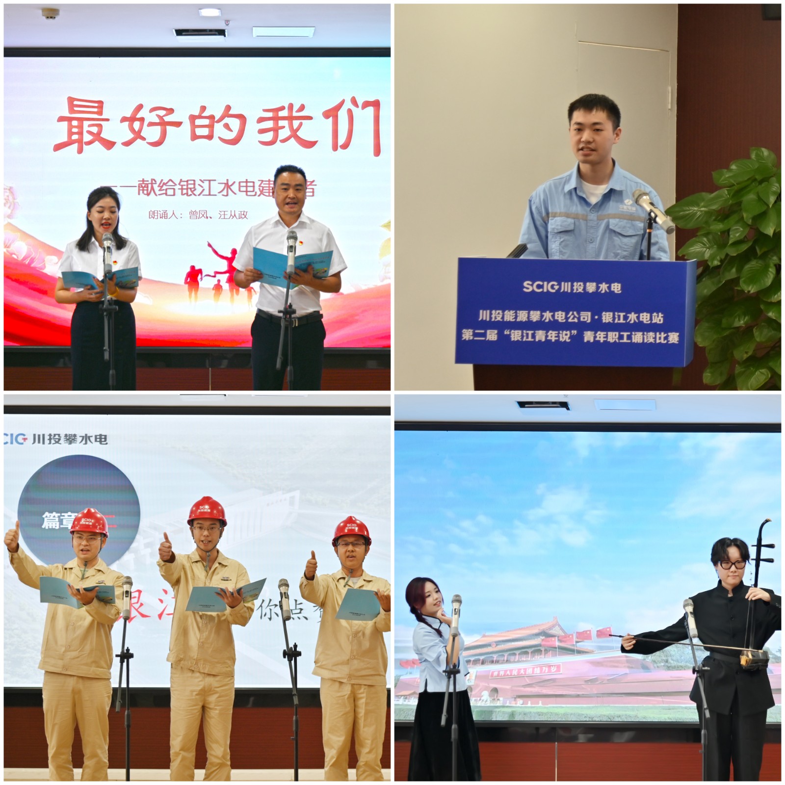 本次比赛以“蓄水发电加油干,银江青年显担当”为主题,来自公司及参建单位的10组14名选手结合各自的工作岗位精心创作了诵读作品,他们中有刚退伍的发电部新兵,有刚毕业的财务新手,还有久经沙场的一线职工,不同岗位、各色服饰、创意满满、精彩纷呈。来自水电五局项目部的黄山珊、扈文博身穿中国风服装,手拿传统乐器二胡,以优美的舞姿和深情的诵读,回顾了历史长河的中青年,赞美了日夜奋战在施工一线的银江青年,充分展现了当代青年的文化自信,勇夺比赛第一名;平日里不善言辞、埋头苦干的工程小伙也勇敢站上讲台,致敬了他们心中“年轻的战场”,以一段充满激情的歌声瞬间把现场气氛点燃;还有发电部新入职的小姑娘,外表文静的她却有着极强的爆发力,让大家刮目相看。