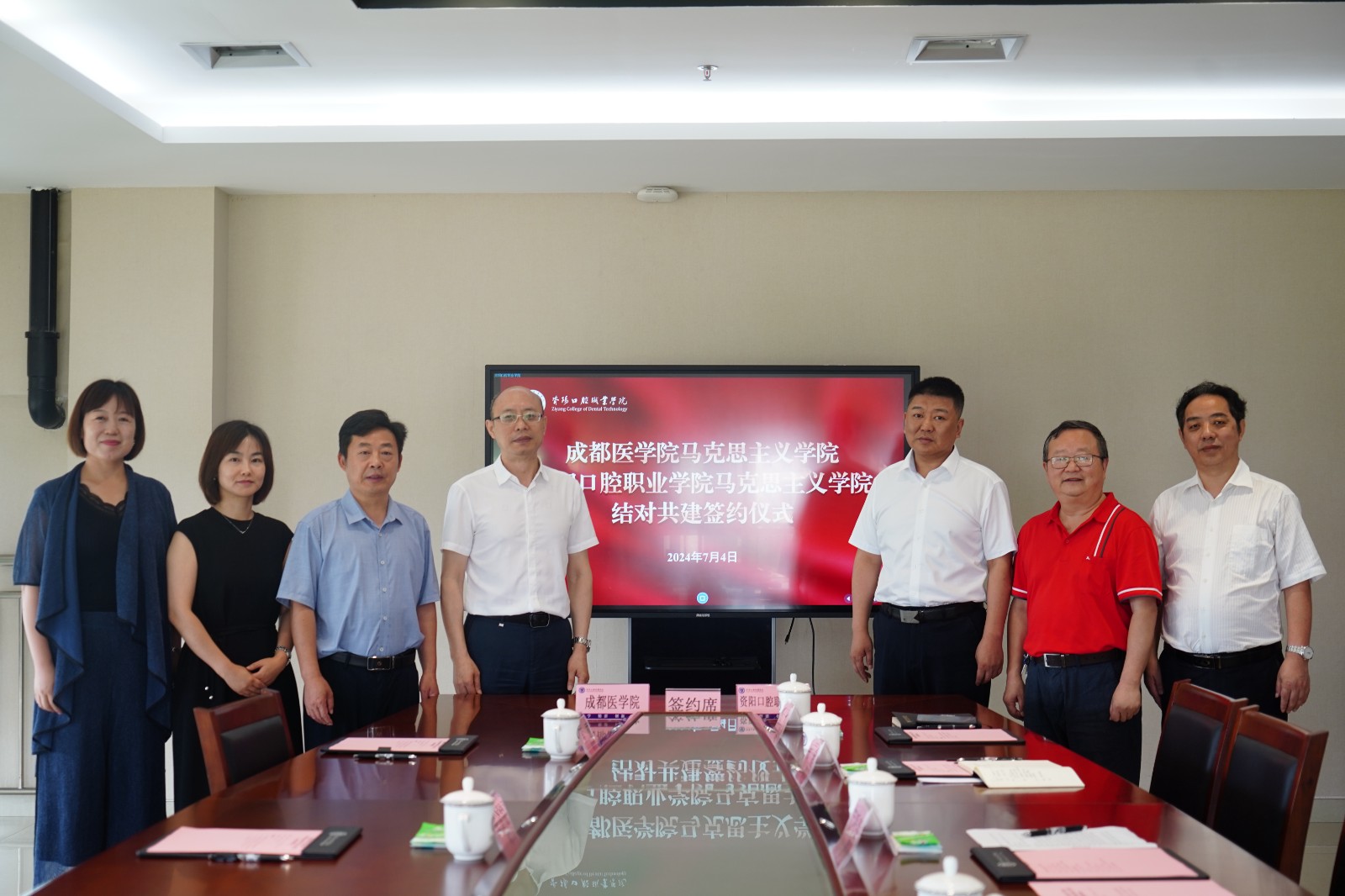 为深入贯彻习近平总书记关于思想政治理论课建设的重要论述,认真落实中共四川省委教育工委、四川省教育厅关于开展四川省高校马克思主义学院结对共建行动的文件精神,进一步推进马克思主义学院高质量建设,近日,成都医学院与资阳口腔职业学院签订结对共建马克思主义学院协议。成都医学院马克思主义学院院长张俊、党总支书记张首先,学院党委书记、理事长张中伟,院长万呼春、马克思主义学院执行院长陈思俊出席会议,学院各部门负责人、全体思政教师参加。