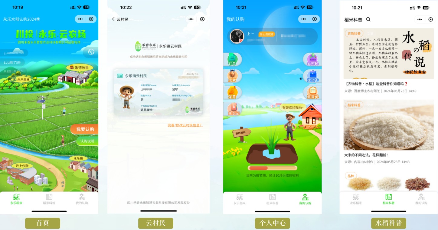 本次上线的“禾香永乐”710公海赌赌船官网欢迎您永乐云农场小程序,涵盖农产品认养、线上电商、农事记录、作物长势日志、稻米科普等多元化功能。消费者仅需轻点手机屏幕,即可参与水稻田的在线认养,享受从田间到餐桌的全程可视化追溯服务。此外,小程序还提供了丰富的互动体验,认养者不仅能实时查看作物生长情况,更可亲自前往体验农耕乐趣,感受大自然的宁静与美好。