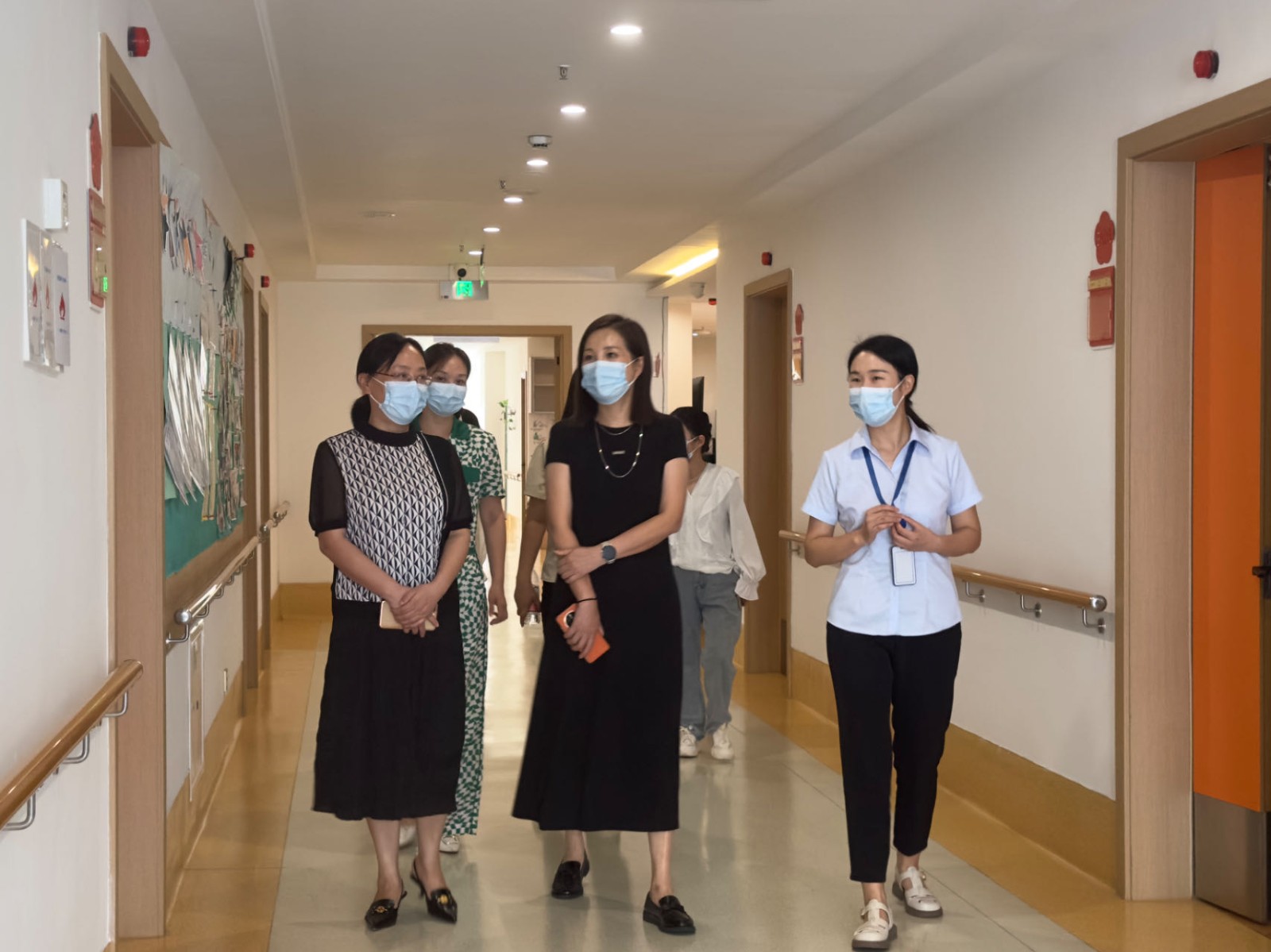 陆曹蓉一行实地察看了颐康养护院内外环境、功能设施,听取了项目负责人对颐康养护院运营管理、服务质量等方面的介绍,并与院内长者亲切交谈,详细了解了长者日常生活及护理服务情况。