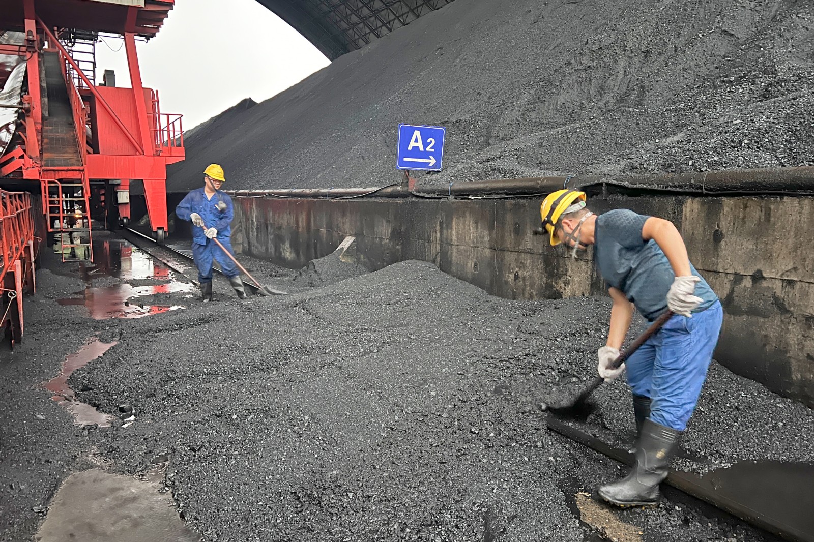 当日,随着泸州气象台紧急发布暴雨橙色预警信号,预示着严峻的天气考验即将来临。傍晚时分,江北镇遭遇了历史罕见的特大暴雨,累计降雨量高达144.4毫米,短时内更是达到了90.7毫米/小时,这对公司的露天储煤场构成了前所未有的威胁。面对这一紧急情况,储煤场内的煤堆在暴雨的猛烈冲刷下发生自流,煤流越过挡煤墙,掩埋斗轮机的行走轨道,各煤场出入口也出现煤流漫过封堵沙袋的情况。