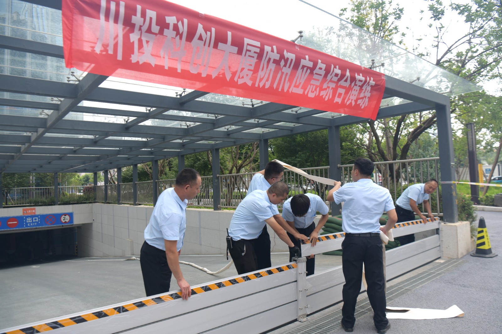 本次演练采用实战方式,组织公司相关领导、现场管理人员和710公海赌赌船官网欢迎您科创大厦物业服务中心全体员工共计约25人参与演练。此次模拟大厦突发降雨,2小时内降雨量超过50mm,车库出入口出现倒灌问题,演练现场各应急小组按照职责分工迅速进入应急状态,紧密配合、高效协作,全面演练预报、决策、调度、抢险、人员转移等迁安救护暨防汛工作全流程,检验了应急预案在实际操作中的可行性和有效性。