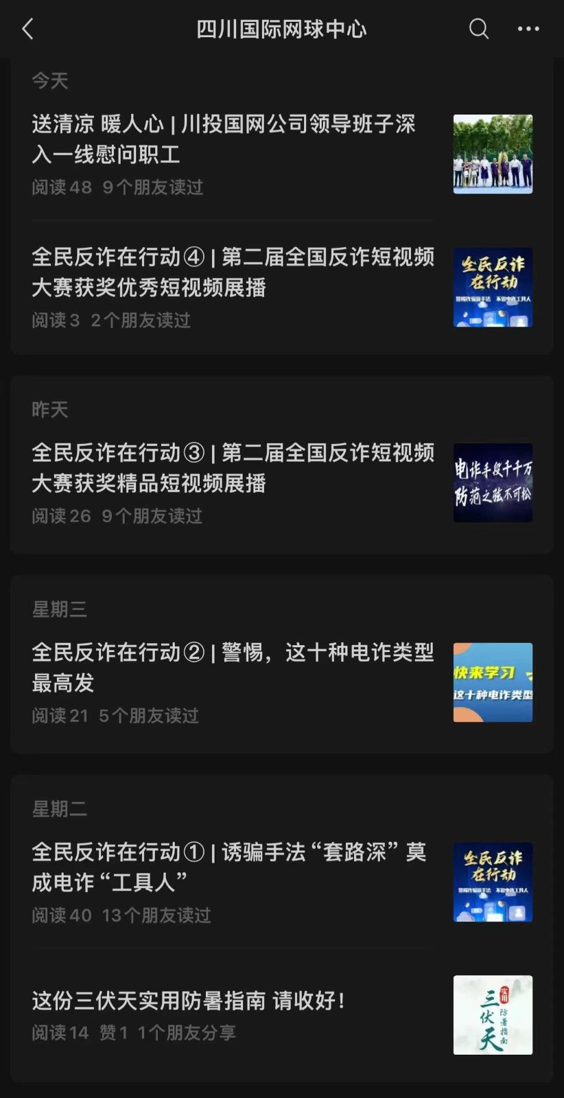 一是利用公司官方微信公众号宣传平台,开设反诈宣传专题专栏,开展第二届全国反诈短视频大赛获奖视频展播活动,转发“公安部刑侦局”等官方政务号发布的反诈宣传科普内容,切实增强公司职工对电信网络诈骗关联违法犯罪的认识。