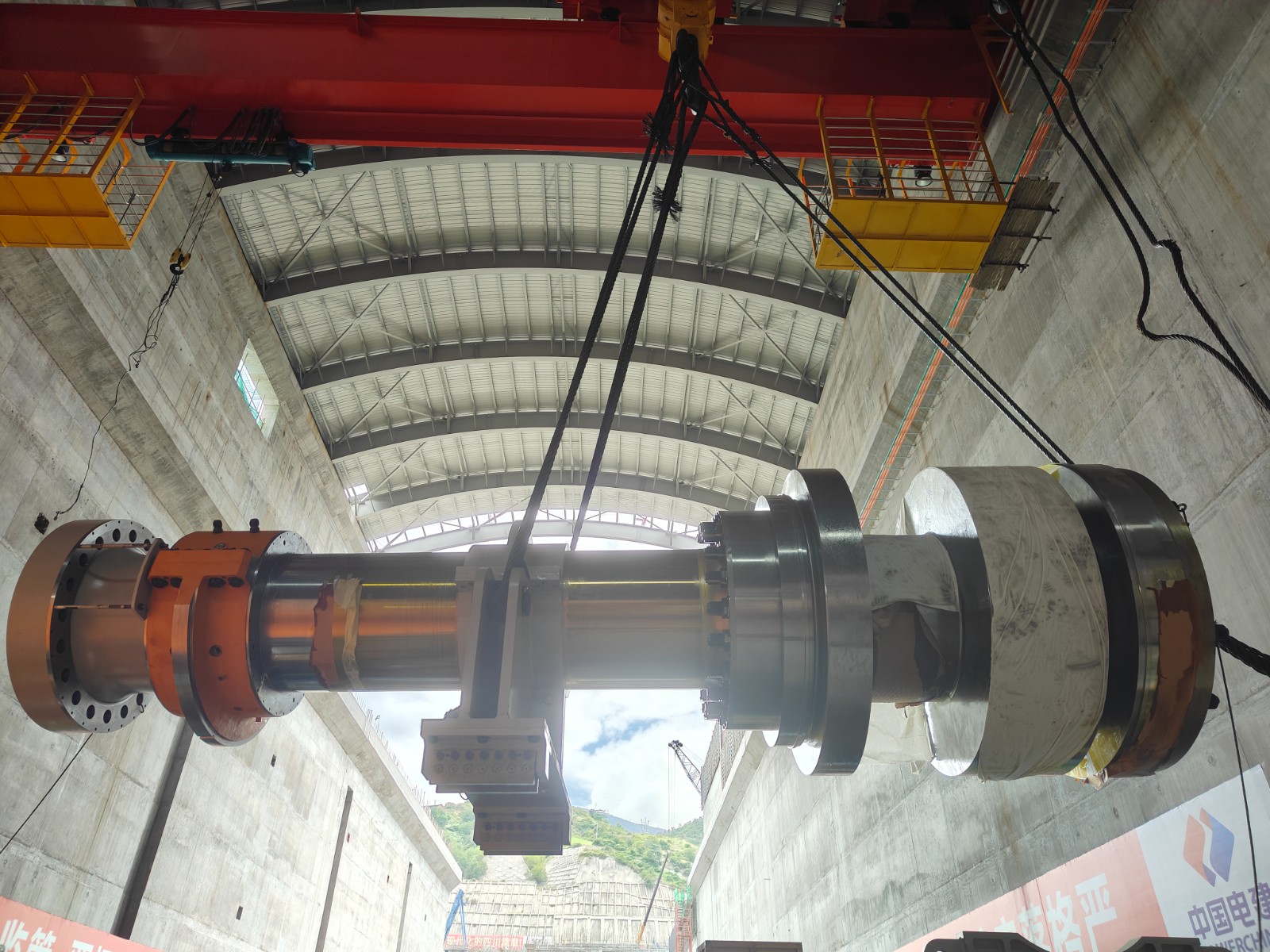 近日,银江水电站首台机组主轴顺利吊装就位,标志着银江水电站首台机组全面进入总装阶段,这是继首台机组导水机构吊装之后的又一重要吊装节点。