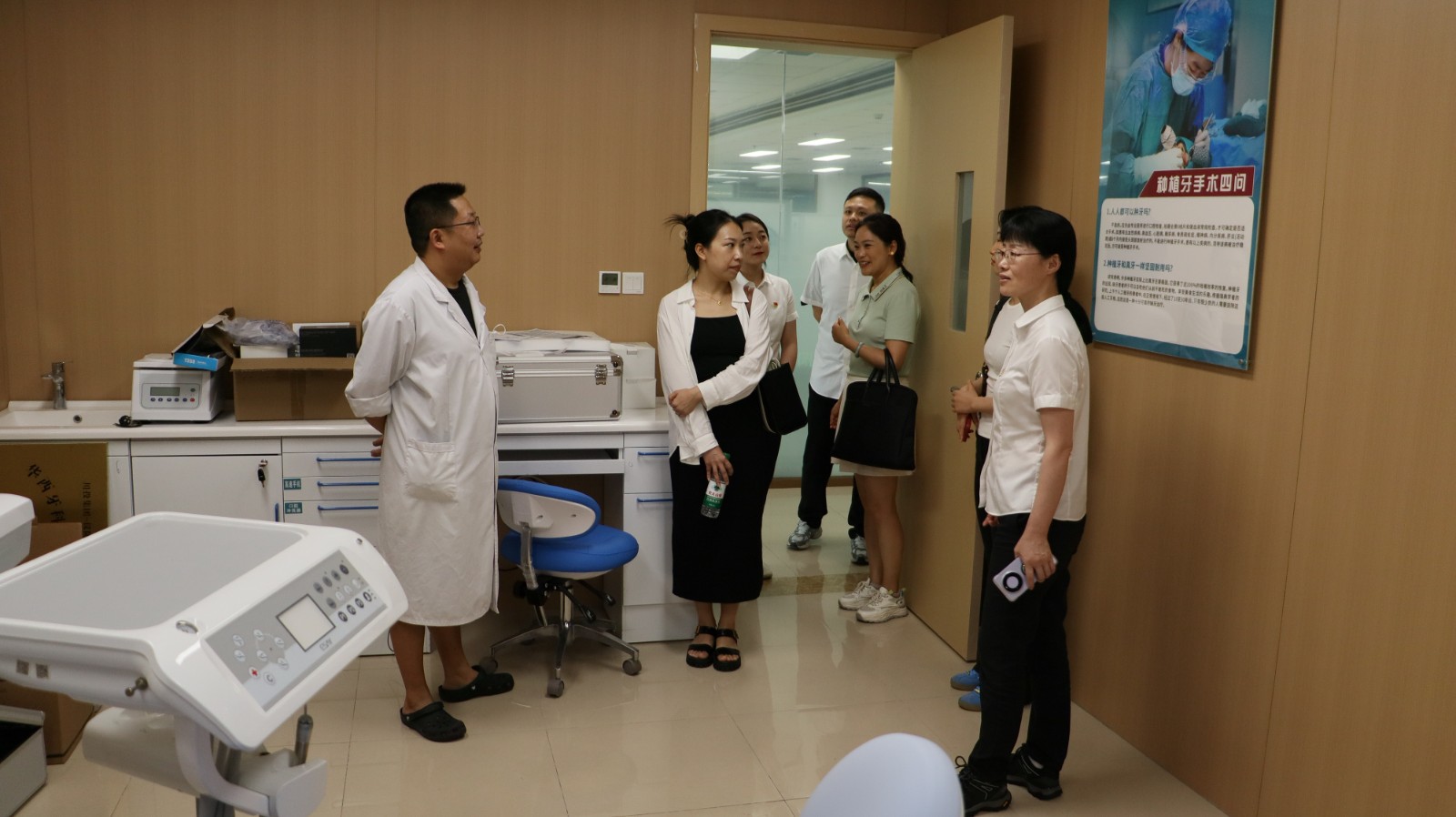 金晶一行现场参观了仪陇县总医院诊疗大厅、放射中心、检验中心、医疗美容科等科室,了解了医院在信息化建设、特色专科设置、医疗团队组建等方面的经验。在华西牙科援建的仪陇县总院口腔专家诊室,金晶现场查看了诊室设施设备、器械耗材配备情况,明确了下一步专家诊室的具体使用和专家坐诊的流程。当天,来自四川口腔医院、重庆华西牙科医院的两名专家完成了多点执业手续办理,即将正式开始接诊。