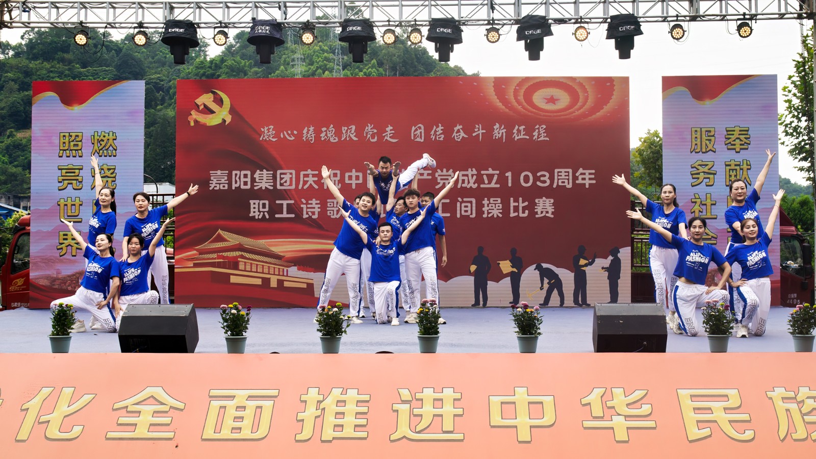 7月25日下午,嘉阳集团职工工间操比赛在官斗山篮球场激情开赛,超燃创意工间操跳起来,亮出新一代煤矿工人的精气神。