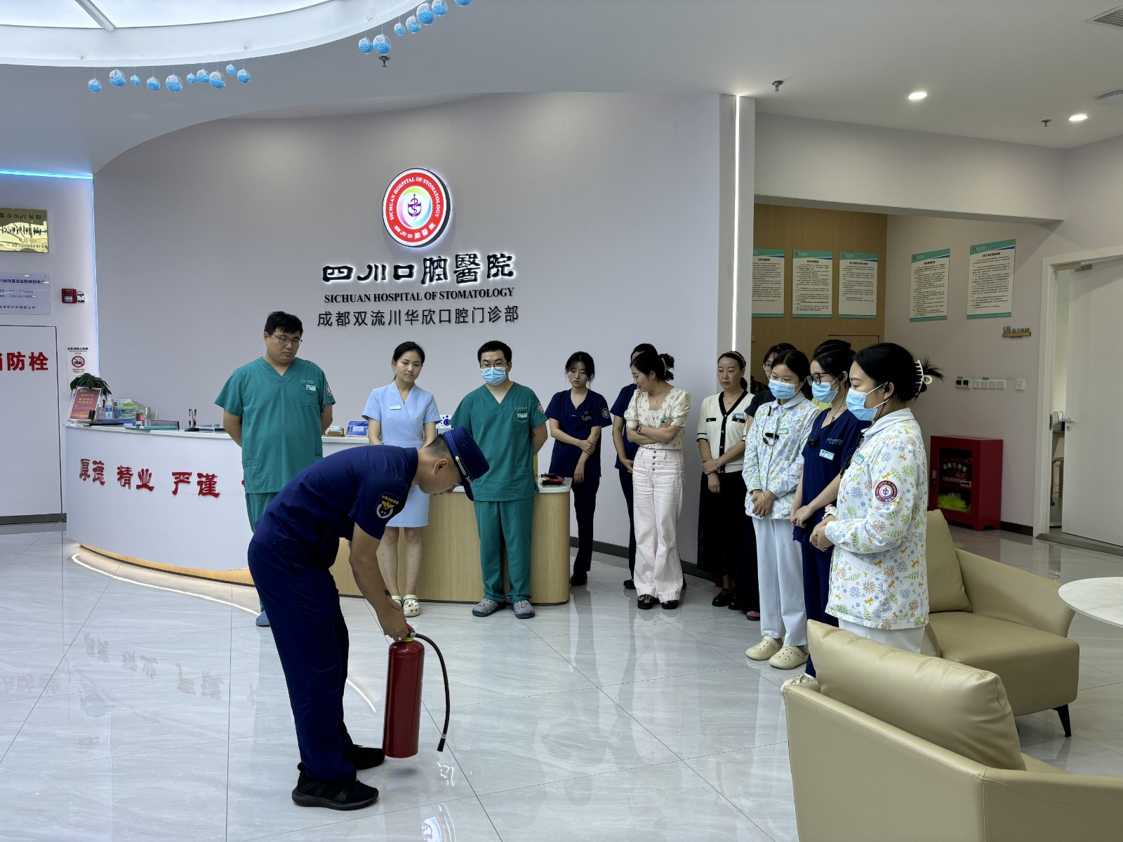 为进一步增强医护人员的消防安全意识和自防自救的能力。8月7日,四川口腔医院双流川华欣门诊部组织开展消防安全培训活动。