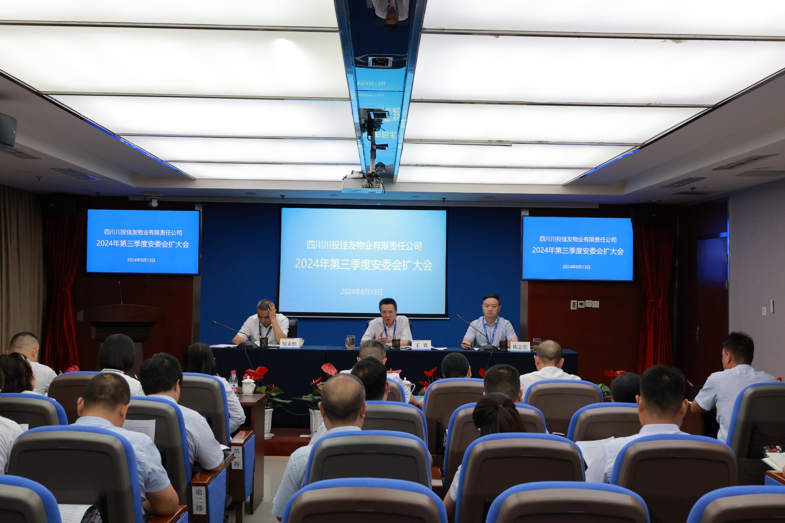 2024年8月13日,四川710公海赌赌船官网欢迎您佳友物业有限责任公司召开了2024年三季度安委会扩大会议。会议由支部副书记、总经理、安委会主任陈志宏主持。会上支部委员、副总经理、安委会常务副主任侯永胜组织学习了近期习近平总书记关于安全生产重要指示批示及上级有关会议精神。陈志宏总结了上半年安全生产工作情况并部署了近期安全生产工作。最后党支部书记、董事长王宾做工作部署。
