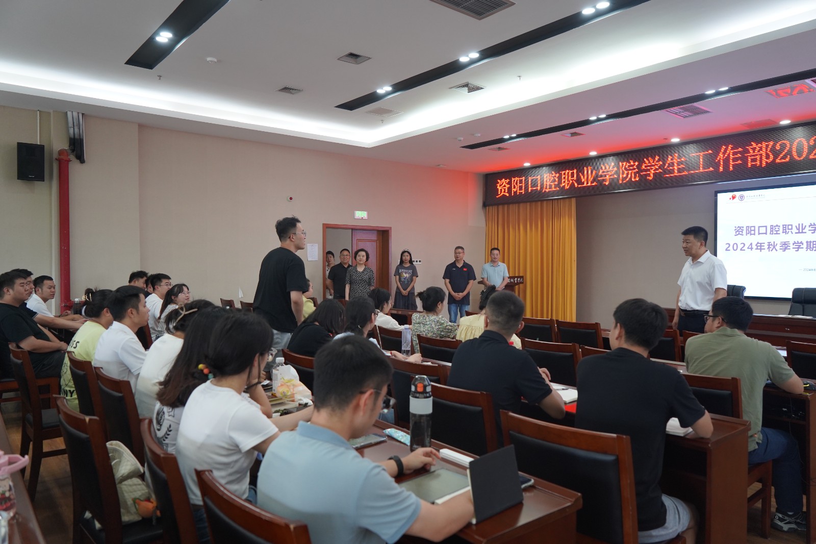 8月26日,资阳口腔职业学院党委书记、理事长张中伟带领在家领导班子成员,深入各系、部、教研室等教学工作一线走访慰问,检查指导新学期各项工作准备和校园文化建设情况。