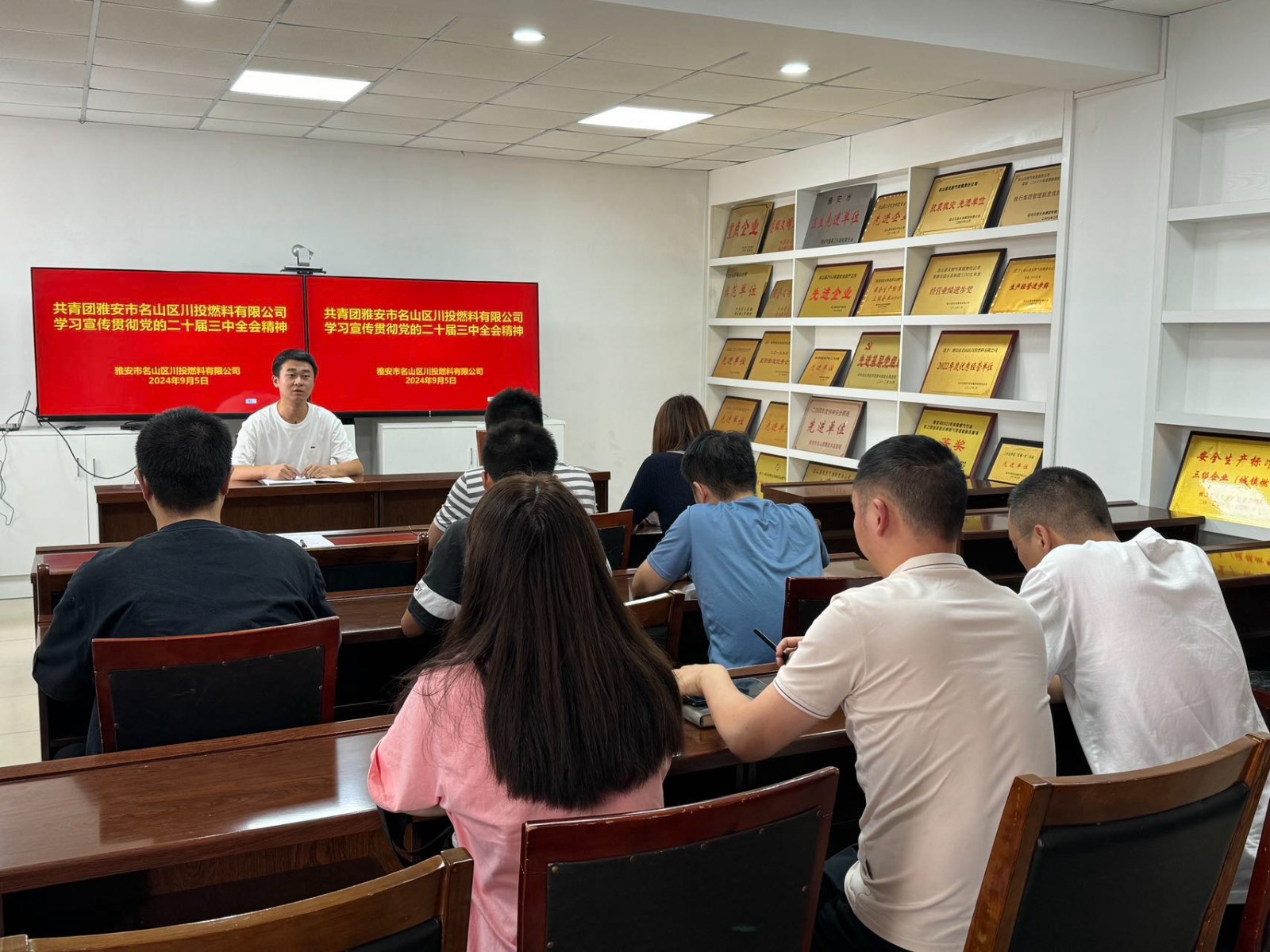 为深入学习贯彻党的二十届三中全会精神,引导广大团员青年深刻领会全会的重大意义和精神实质,2024年9月5日下午,名山川燃组织开展了“党的二十届三中全会精神”专题学习暨青年宣讲活动。