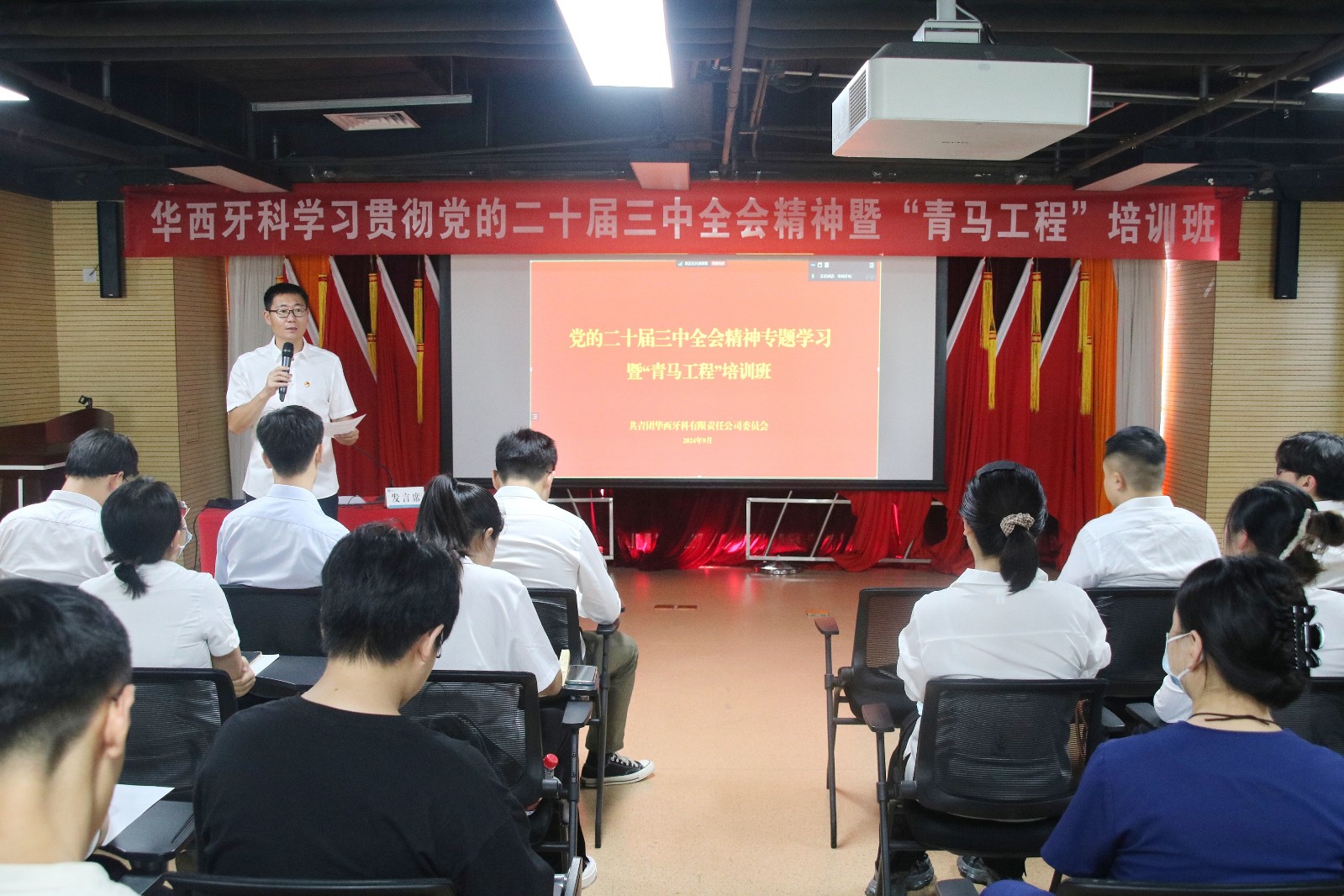 为深入学习贯彻习近平新时代中国特色社会主义思想和党的二十届三中全会精神,认真贯彻落实习近平总书记关于青年工作的重要思想,进一步深化青年思想政治引领。9月13日,华西牙科团委组织开展党的二十届三中全会精神专题学习暨“青马工程”培训班。“青马工程”学员及华西牙科团委委员、各团组织团员青年代表共53人通过线上线下结合的方式参加此次培训。
