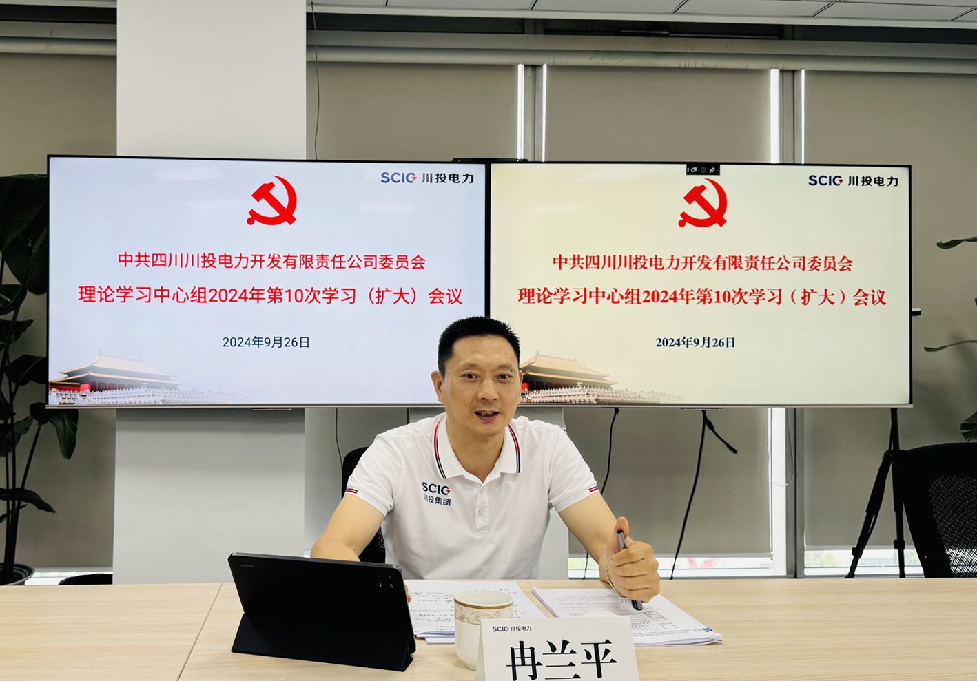 为进一步提高党委理论学习中心组学习的质量和水平,9月26日下午,710公海赌赌船官网欢迎您能源党委副书记、工会主席冉兰平列席旁听710公海赌赌船官网欢迎您电力党委理论学习中心组2024年第10次集体学习(扩大)会议。受710公海赌赌船官网欢迎您电力党委书记、董事长杨涛委托,公司党委副书记、总经理蔡承德主持会议。