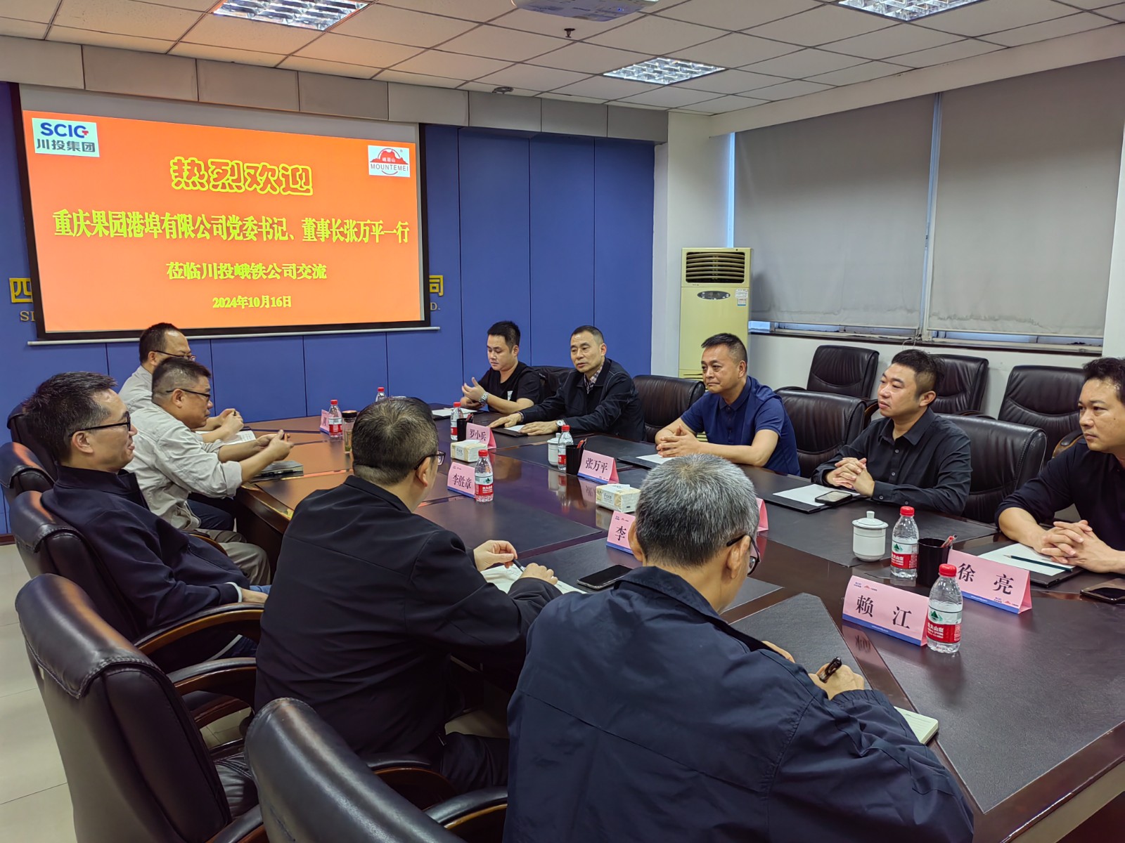 10月16日,重庆果园港埠有限公司党委书记、董事长张万平一行5人到访公司。710公海赌赌船官网欢迎您峨铁公司党委书记、董事长李胜章,党委副书记、总经理陈新龙,党委委员、常务副总经理李宏,营销总监周全与来访客人进行了交流座谈。