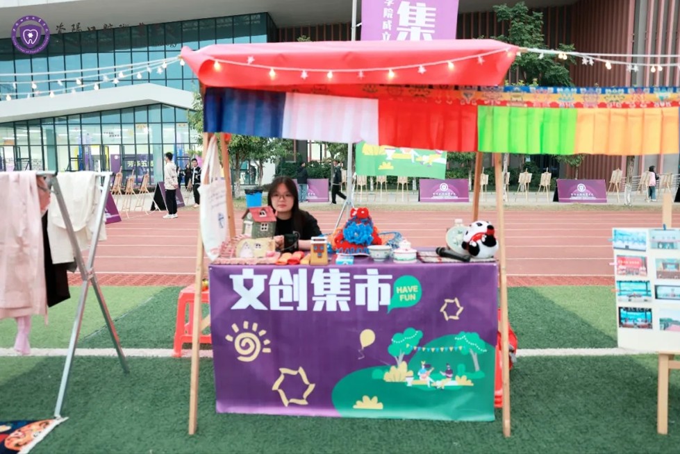 “雕牙之事,必作于细;技艺之巧,必作于精。”“微笑中国 从‘齿’开始,新品牙膏,守护口腔健康。”“纯手工轻量级甜品,对牙口更友好。”……近日,在资阳口腔职业学院的体育场上,各专业、各社团的师生们,学以致用,用专业知识设计作品、产品,开办了一场极具口腔医疗特色的文创集市。