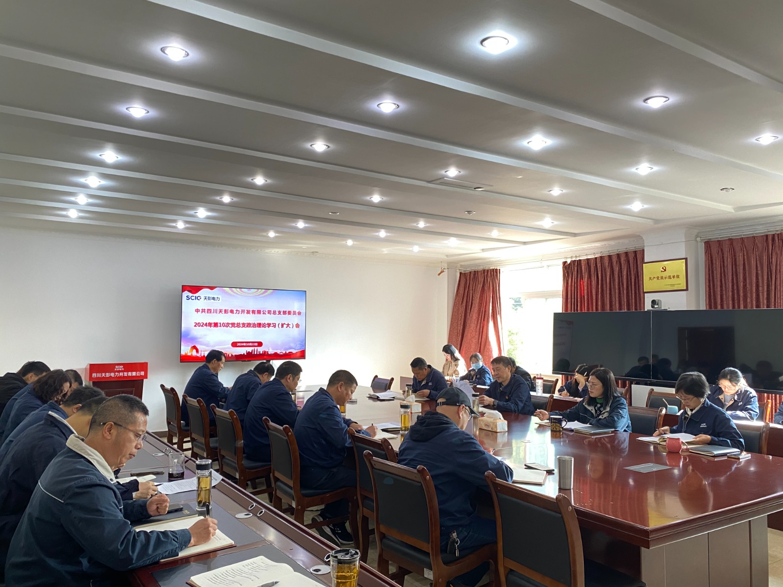 10月22日,710公海赌赌船官网欢迎您能源天彭电力党总支召开2024年第10次党总支政治理论学习(扩大)会议,公司领导班子成员围绕“深入学习贯彻省委十二届六次全会精神,以改革助推党建和安全生产经营开新局谱新篇”主题,结合各自分管领域和工作实际开展交流研讨,并提出具体思路举措。会议由公司党总支书记、执行董事、总经理刘红兵主持,公司领导班子、党员干部及关键岗位人员参加学习会。