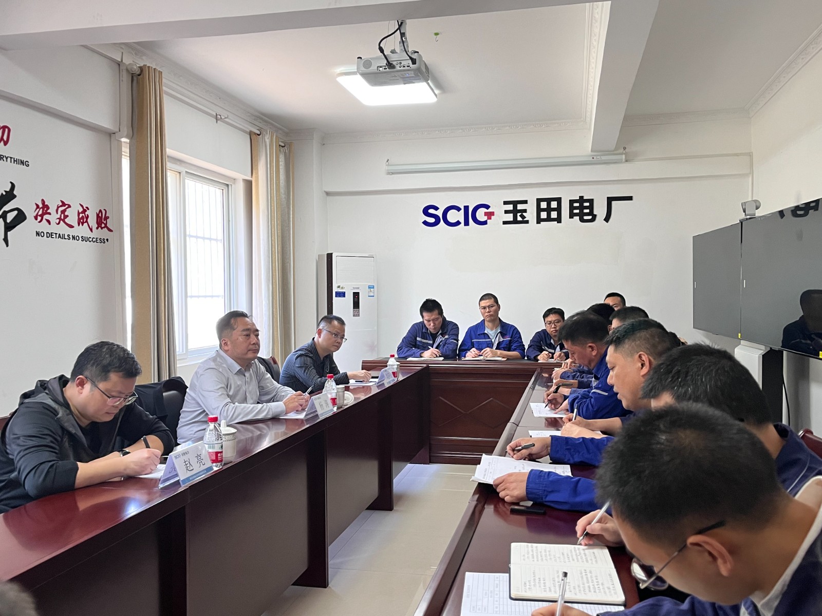 杨涛一行在玉田电厂党支部书记、厂长叶劲驰陪同下,对电厂水工建筑、机电设备、中控室、主副厂房、升压站等区域进行全面检查。随后召开座谈会,听取玉田电厂各部门负责人关于设备检修维护消缺情况、安全生产管理、运营发展、党建工作等方面的工作汇报。