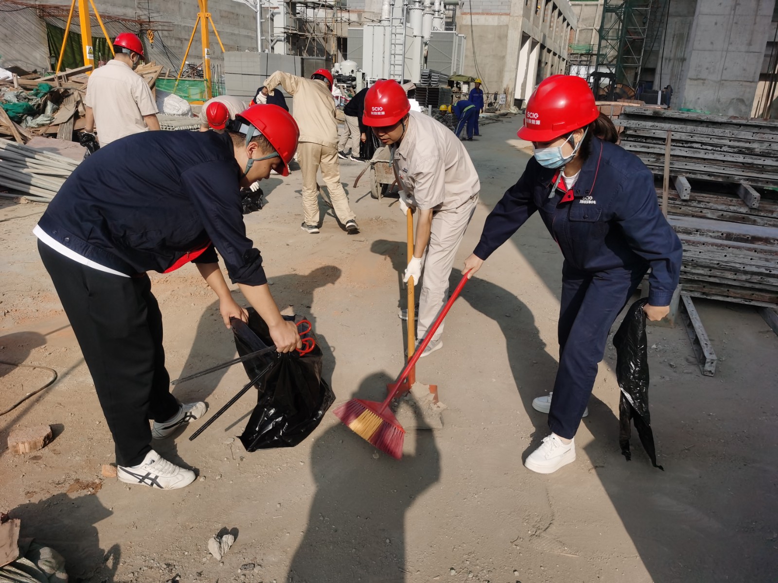 活动开始前,安全环保部经理唐云宏从安全生产应急知识、工地安全防护和注意事项方面进行了简要培训,提醒、督促大家在施工现场一定要做到“抬头看天,低头看路”,认真做好安全防护,随时保持安全警惕性。随后,各支部党员同志、志愿者们斗志昂扬、团结协作,分为三个小组开展工地清扫、整治卫生死角活动,大家手持垃圾袋、扫帚、火钳等工具,对坝顶、GIS楼、上游导流明渠、钢筋场等区域进行了集中清理整治,共同营造了干净整洁的施工环境。