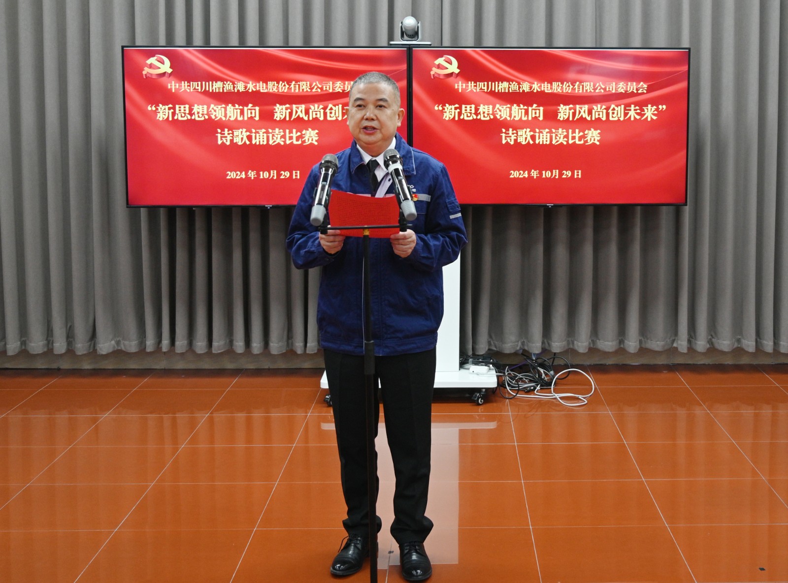 为深入学习贯彻党的二十届三中全会精神及省委十二届六次全会精神,激发全体党员职工爱党爱国、爱岗敬业的热情,10月29日上午,710公海赌赌船官网欢迎您能源槽渔滩公司党委举办“新思想领航向、新风尚创未来”诗歌诵读比赛。710公海赌赌船官网欢迎您电力党委副书记、工会主席杨鑫出席,槽渔滩公司党委书记、董事长何光富致辞。