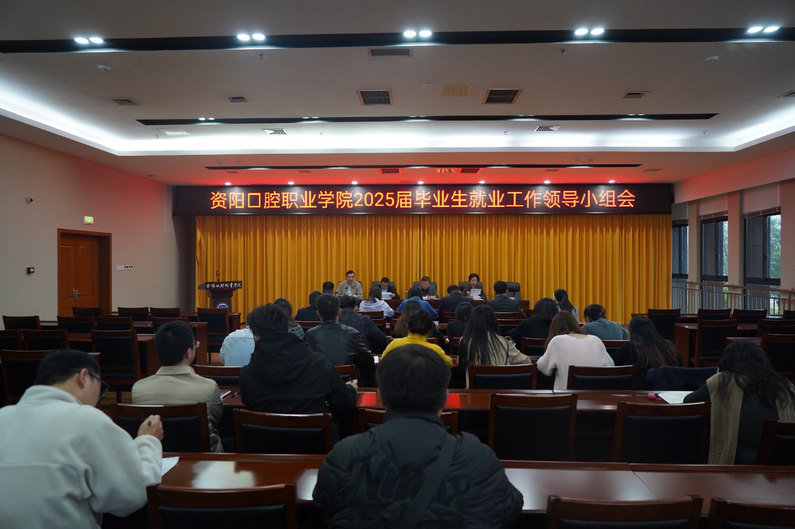 为积极推进2025届毕业生就业工作,促进毕业生高质量充分就业,11月7日,资阳口腔职业学院召开2025届毕业生就业工作领导小组会,学院在家领导班子成员出席,各系部负责人、就业办全体成员、各系学工组长及毕业班辅导员参会,学院副院长刘洪主持会议。