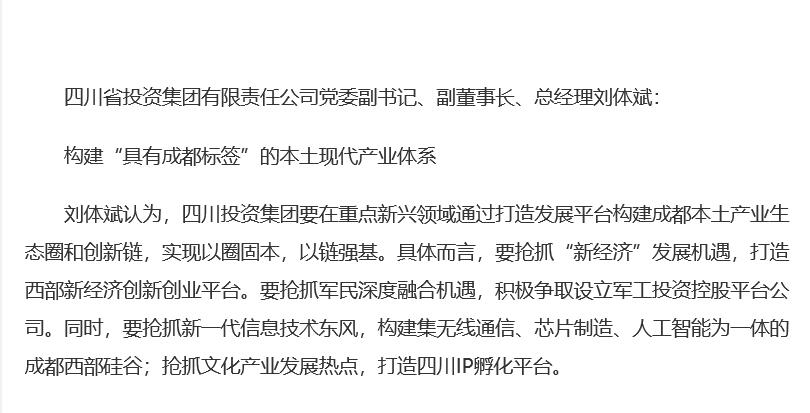 四川省投资集团有限责任公司(简称710公海赌赌船官网欢迎您集团)是四川省人民政府授权的国有资产经营主体、重点建设项目的融资主体和投资主体之一,省国资委管理的国有独资公司。了解更多>