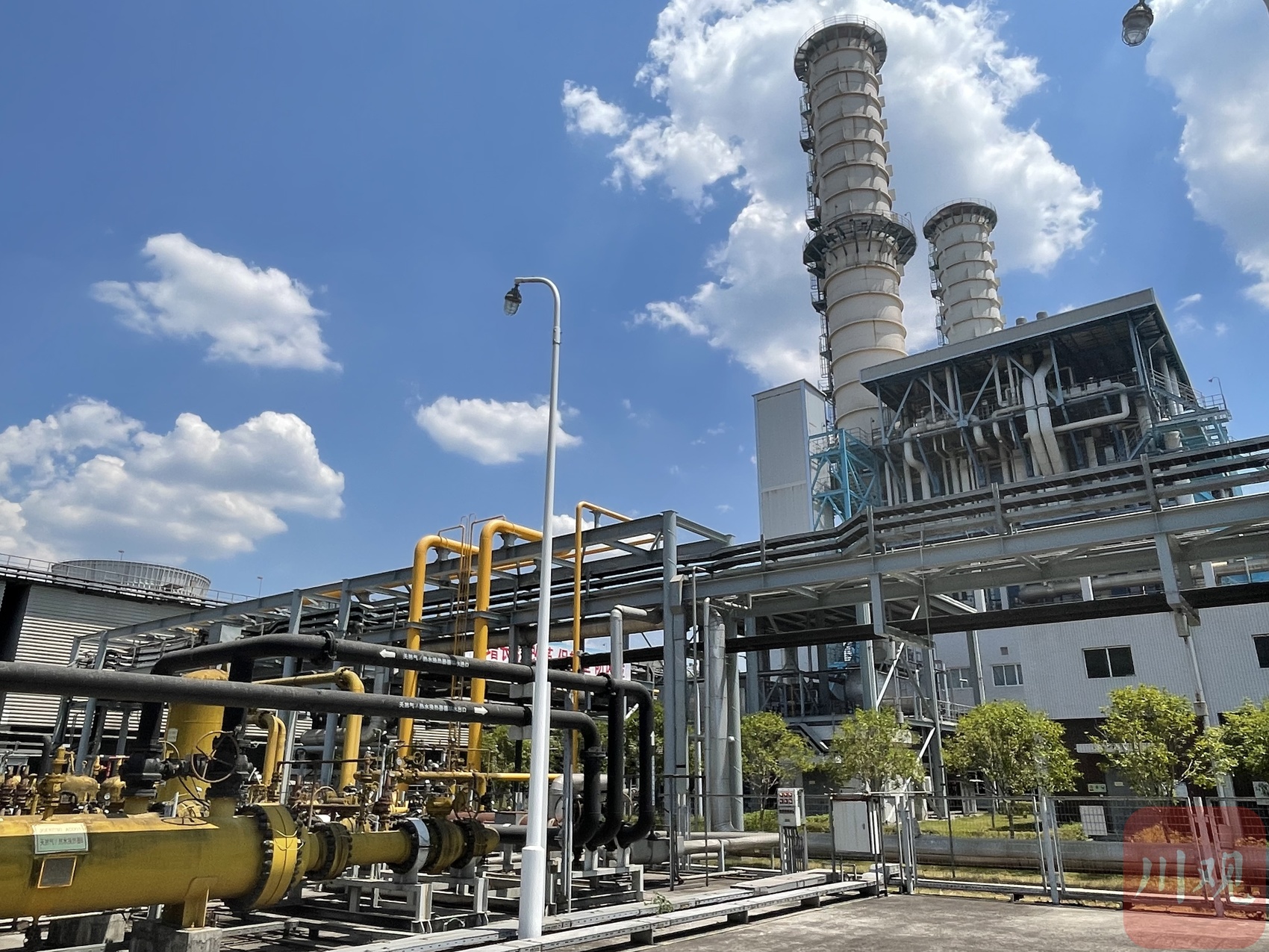 燃气轮机主厂房外,是集中控制室,两台35万千瓦燃气发电机组高速运转的成果,可在这里肉眼看见。